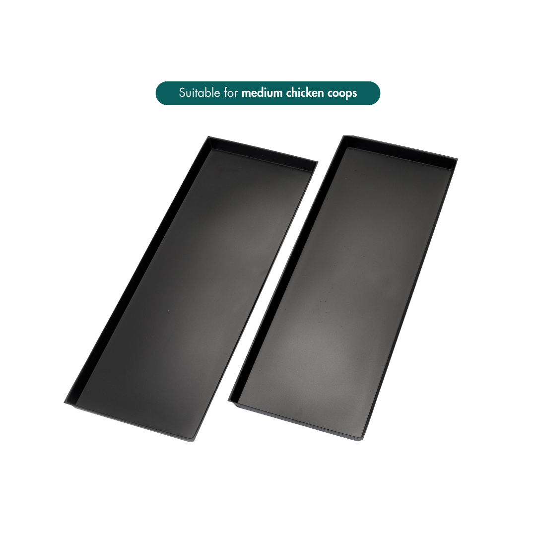 The Small chicken coops require one small tray kit which includes 1 x Square TrayThe Medium chicken coops require one medium tray kit which includes 2 x Rectangular TraysThe Large chicken coops and Wagon require one large tray kit which includes 3 x Rectangular Trays